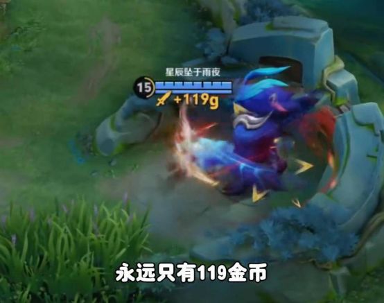 若说这是系统有意操控对局,让玩家面对经济增益20%的对手,似乎也并不完全准确——因为在本局中,澜的队友孙尚香也享有同类加成:无打野刀击杀野怪仍得119金币,与队友合击炮车甚至分得133金币。