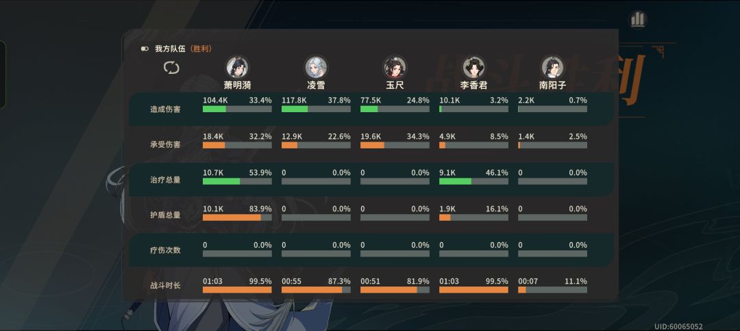 让我比较意外的是打完出来一看萧明漪的输出还挺高的,我应该全场就放过她两次大,剩下时间都在忙着放策略和凌雪玉尺大,也是给了我一个小小的惊喜