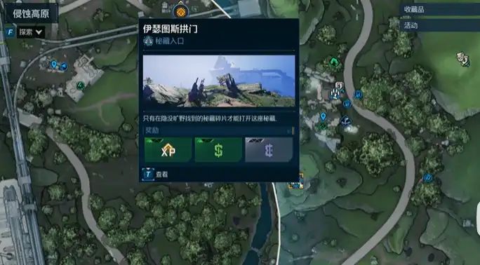 集齐三个密藏碎片接下来就是咱们大门的位置了,位于【侵蚀高原】的山顶