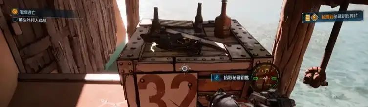 地图的最左下角的【海岸骨境】碎片就在海边的一个小木箱上