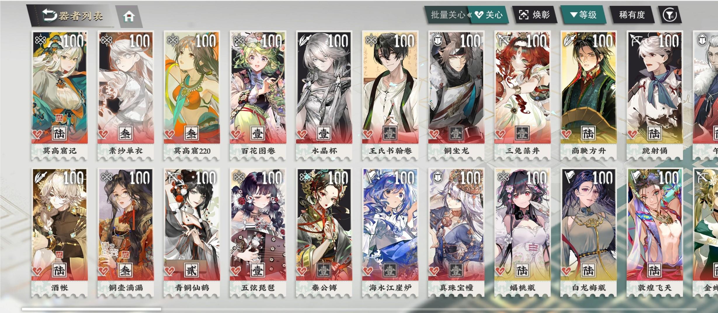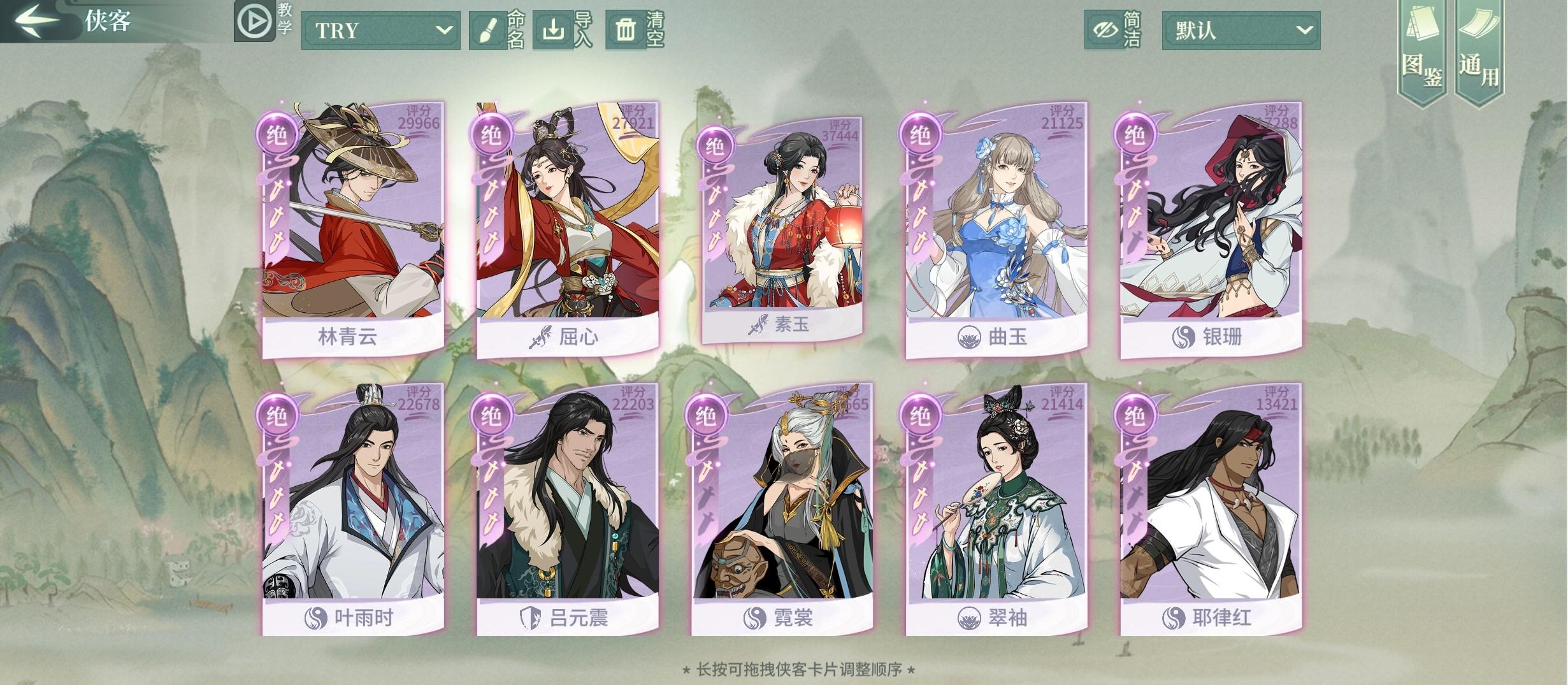 - 团队既然有人玩二游,请问二游角色栏界面是这样乱的吗?剑川的角色栏界面UI不提友商,连自家前作产品【汉家江湖】都不如。【汉家江湖】的角色栏UI界面,背景群山掩映,青绿色的山峦点缀空白四周,角色卡面居于其中,美观与和谐合二为一,深深契合一款古色古香的武侠游戏主题,唯一的遗憾是没有做成动态背景,从美学感受而言,是我目前玩过的游戏中最出色的。顺带贴两张友商,不提美观,哪家不比剑之川和谐?剑川呢?两个都不占。汉家江湖的主美,能不能救下?还有筛选问题,我后面接着点。