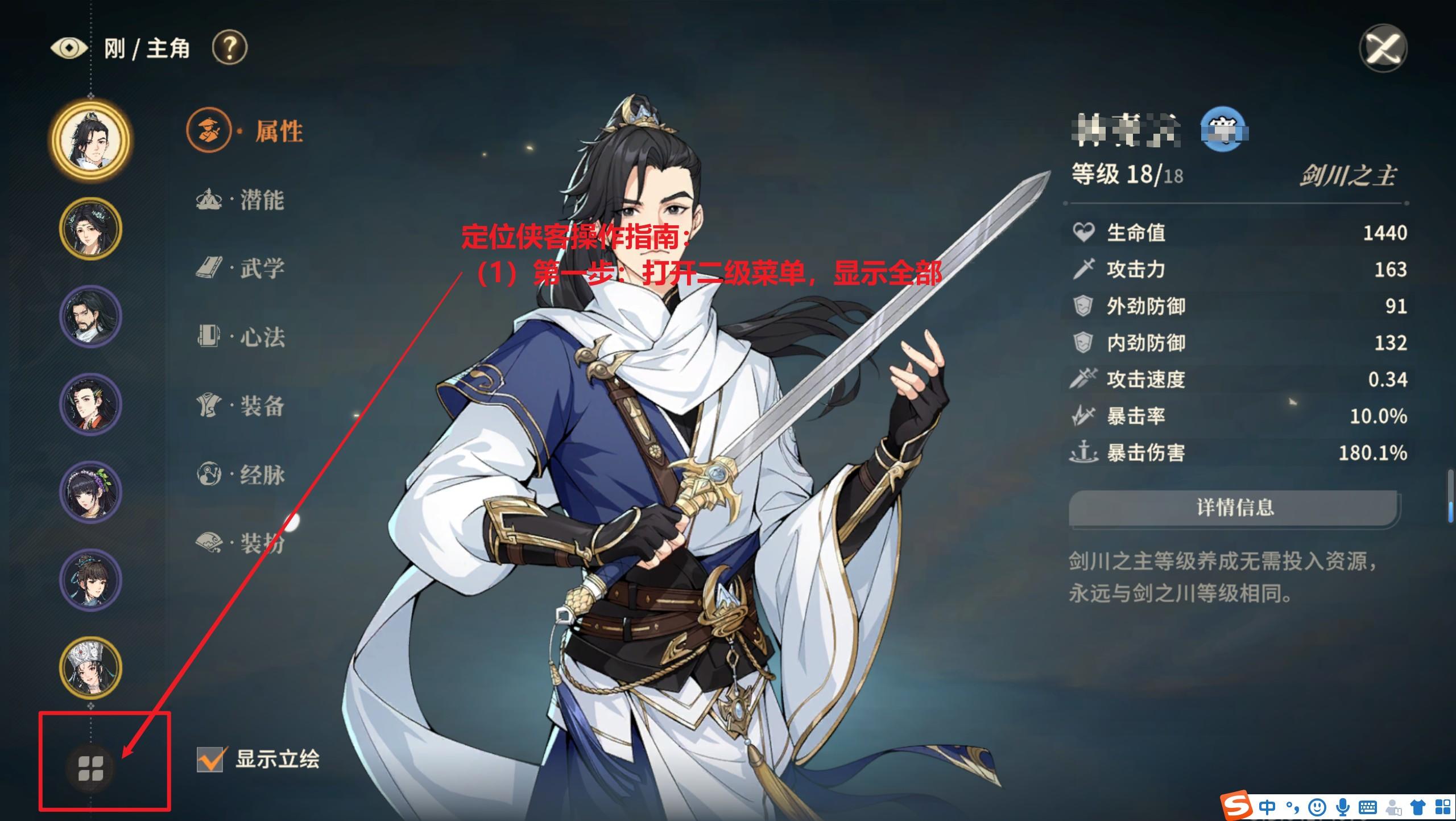 - 第一步:点击右下角,田字格图标,进入隐藏的二级角色栏菜单,查看全部角色