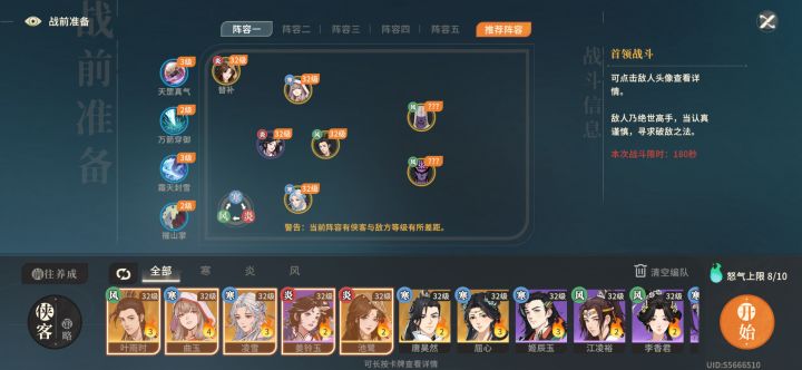 策略:天罡真气(必备,不然站不住),霜天封雪(破御必备,有就放在boss和前排中间),其他:摧山+梧叶无秋风(截图策略配置有差异,通关前未截图)