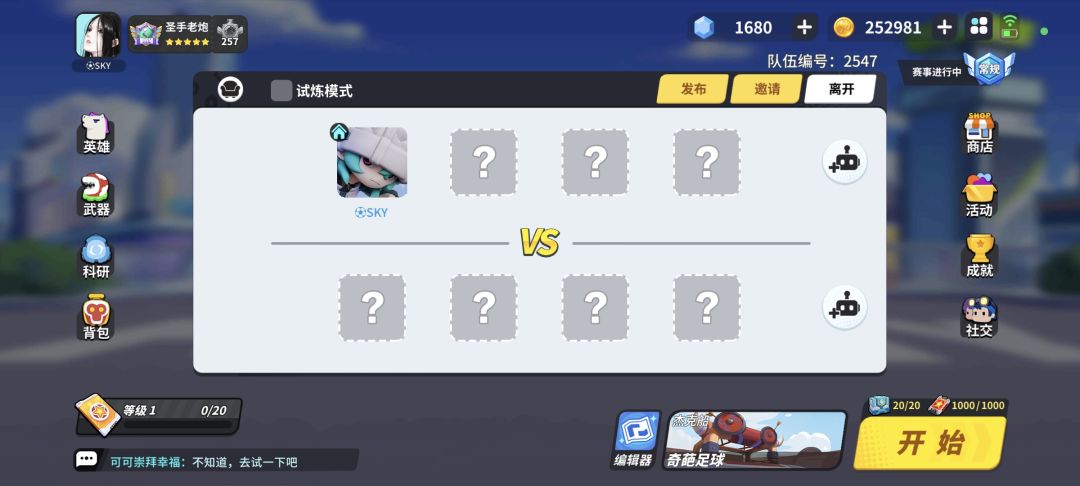 足球模式没有征召模式,是bug还是刻意的啊,足球好歹也是个挑战赛模式,也不像吃鸡那样特殊