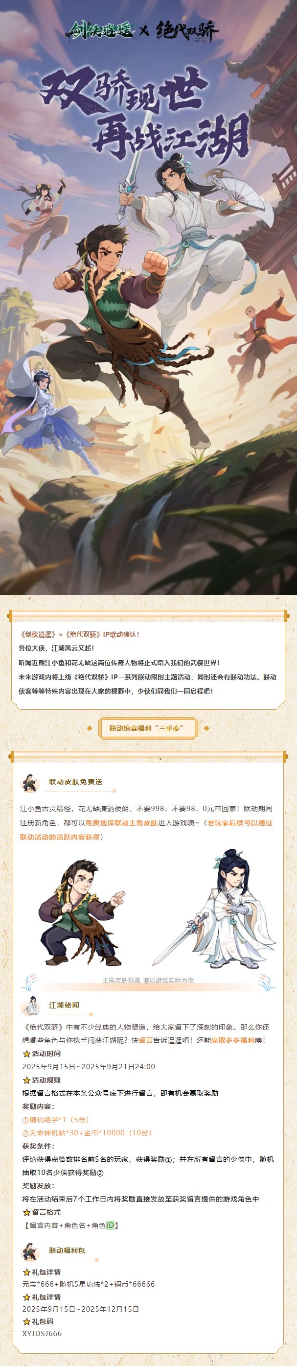 【江湖秘闻】《剑侠逍遥》×《绝代双骄》IP联动确认!