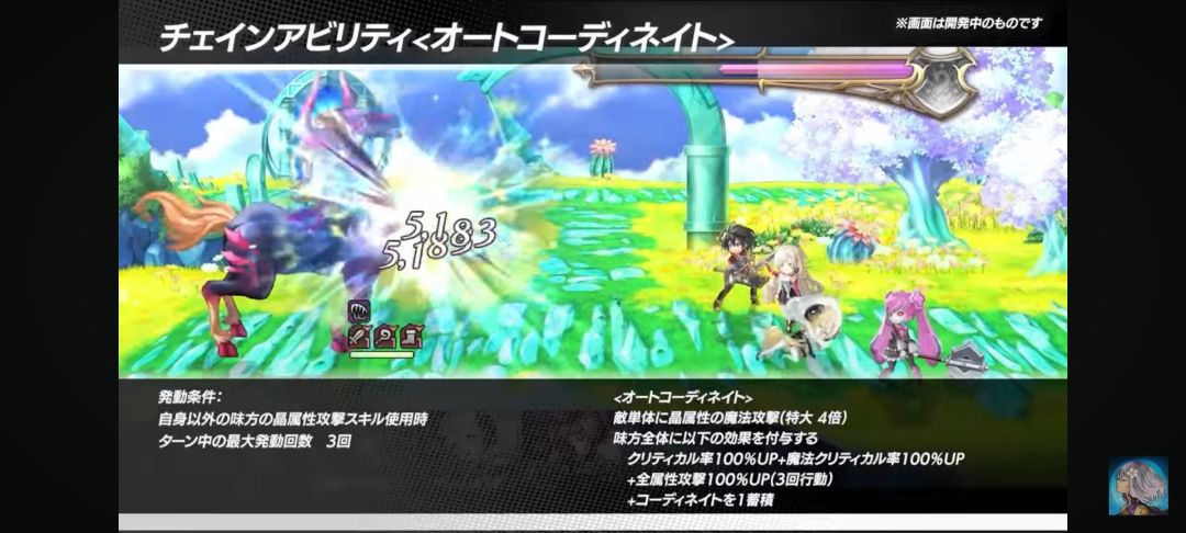 我方全体附加晶属性攻击力50%UP (3回合 最多累积次数3)