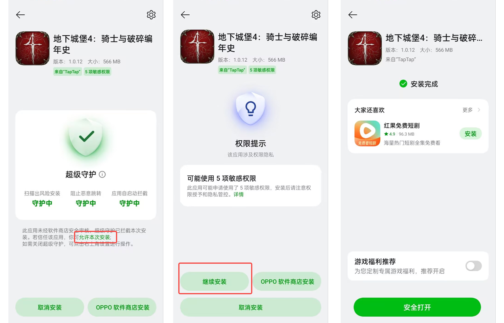 2、若出现以下提示,请按照图示进行操作,即可完成地下城堡4下载安装~