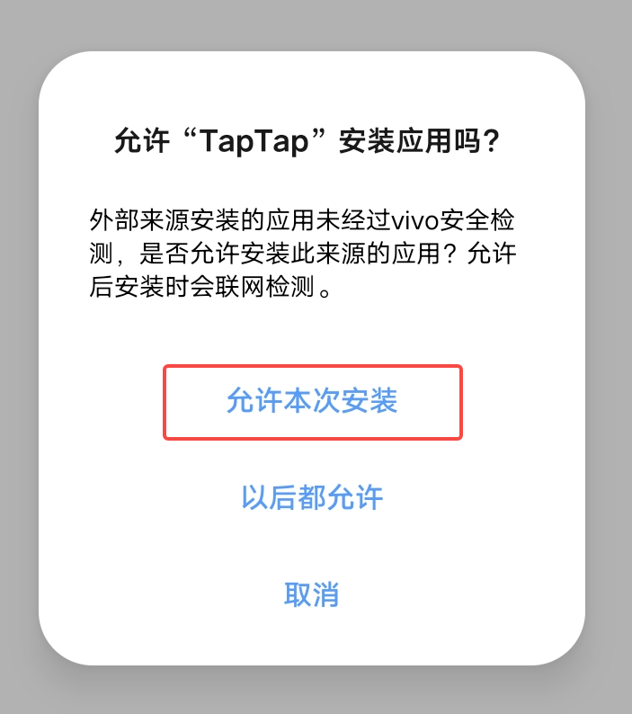 1、通过TapTap下载地下城堡4,点击以下弹窗【下载】按钮即可完成下载,之后点击【允许本次安装】