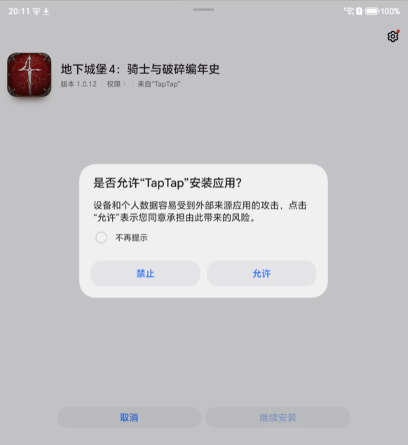 1、通过TapTap下载地下城堡4,点击对应页面【下载】按钮即可完成下载,在弹出安装提示后点击【允许】