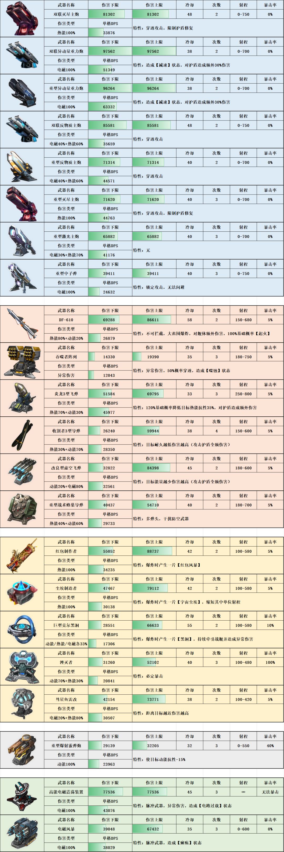 战术武器是《银河掠夺者》中核心的养成要素之一,武器特性是搭配的关键,这里将为您展示满级数值和特性,供各位参考搭配。
