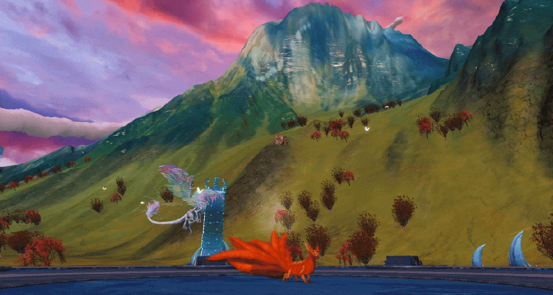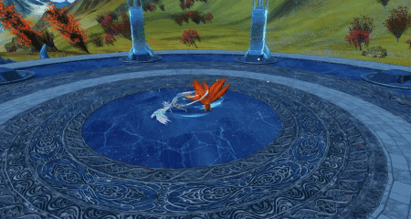 亮翅后再左右交替甩出翅膀上的羽毛攻击敌人在目标地点产生爆炸(近程伤害);据传,此招式为嘲风观察风神禺强战斗时领悟