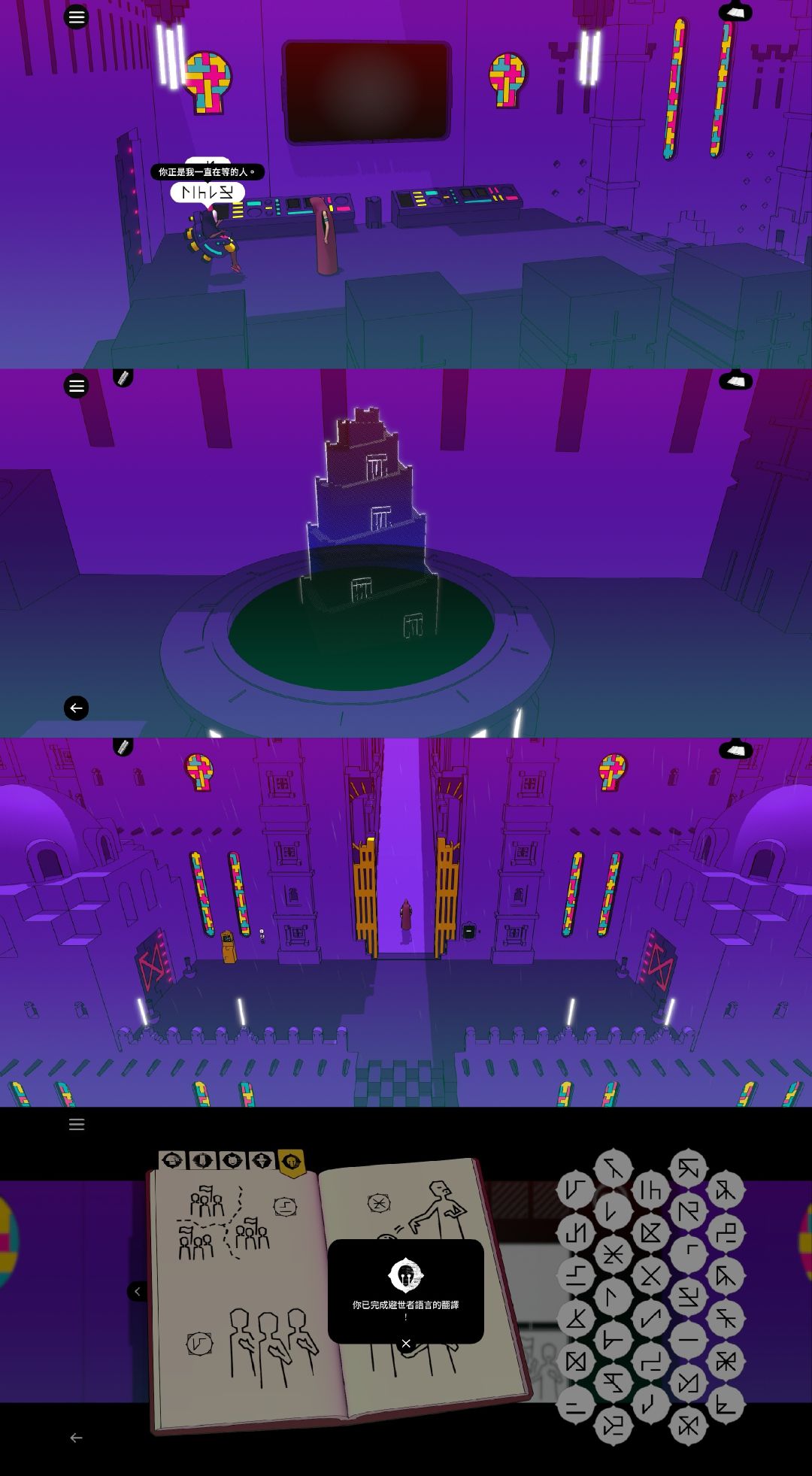 终于通关了,感觉像是完成了一个大工程。这(Chants of Sennaar)是一个非常宏大、非常壮丽、非常精彩的游戏,游戏画面绚丽多样,充满着神秘感,传达着无形的秩序感,让人很容易代入情境;游戏音效细腻独到,非常吸引人。