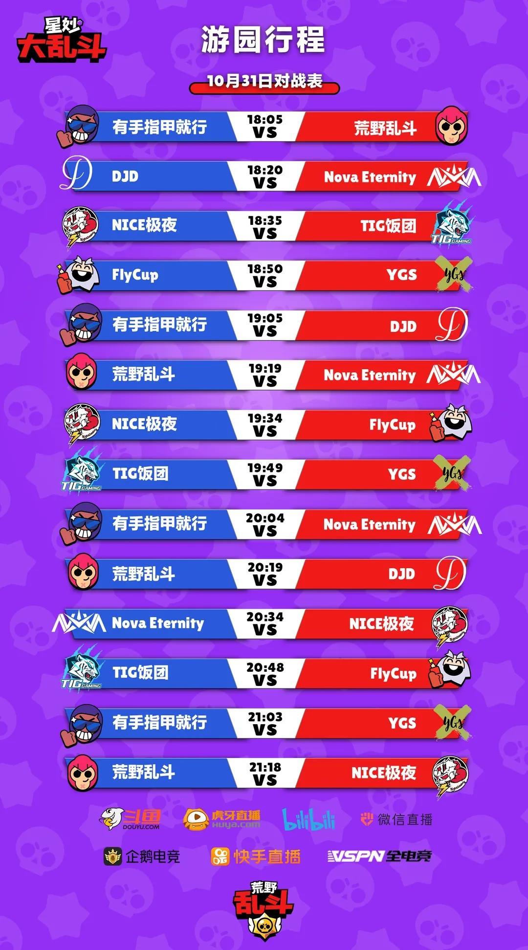本次的星妙大乱斗宝石大亨小组赛一共有4个比赛日,10月31日-11月1日将进行A组的比赛,11月7日-8日将进行B组的比赛,每天18点开赛。届时,我们将在虎牙、斗鱼、B站、快手、企鹅电竞、微信和全电竞同步直播这场精彩赛事,王子、白教练、皮皮月将担任解说,这几位老司机将带领大家驰骋荒野乱斗的赛场。