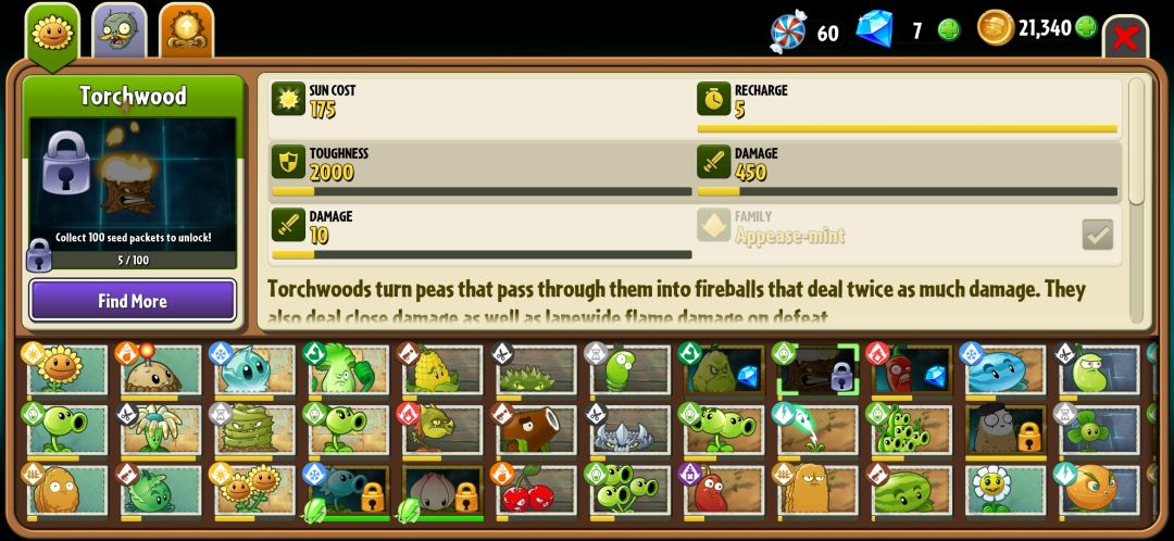 本次更新中,火炬树桩成为了免费植物,可以通过获得100个种子包来解锁