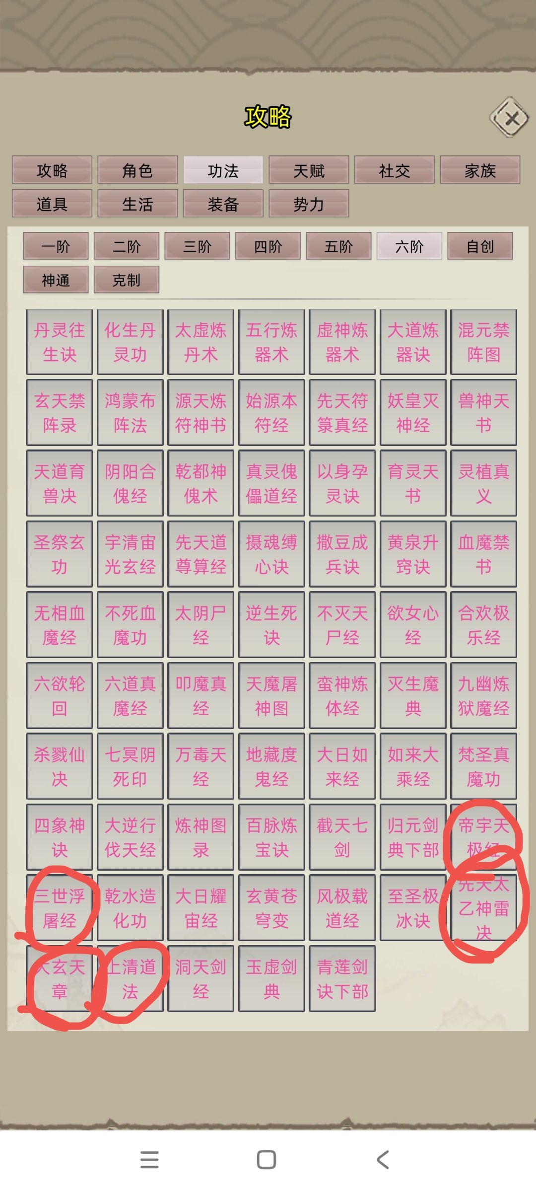 最后两张是六级功法,主修那三个可以加血加蓝和加寿命,辅修的就是最后,或者法修都可以。