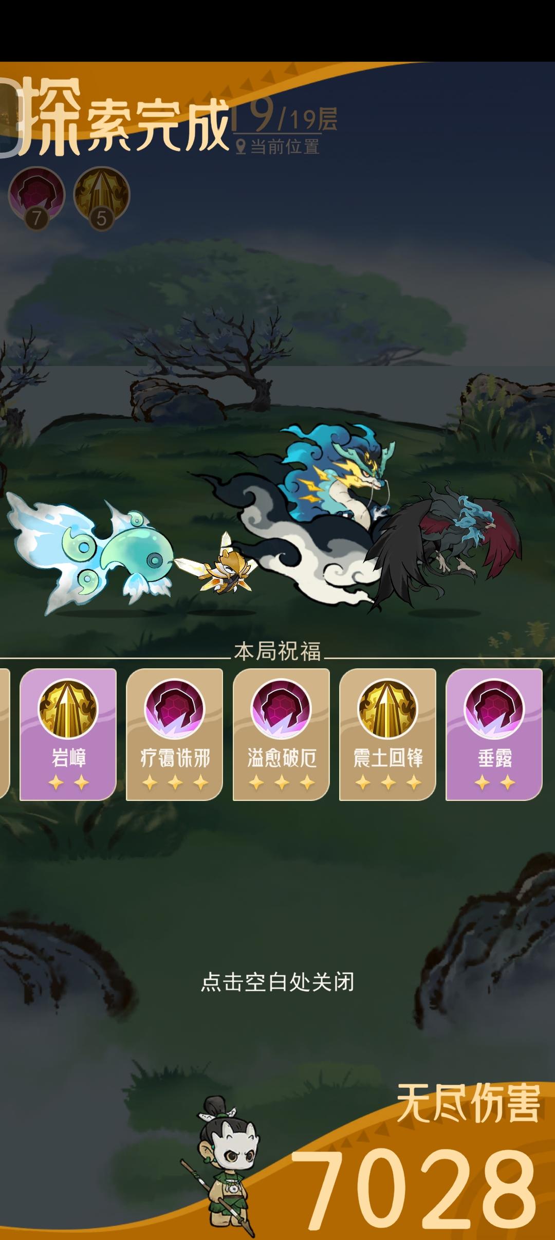 实际上只用了暗鸟雨师和鱼,登仙没上场过。单打用暗鸟暗系大招,双打用雨师和鱼使出水系群攻就可以了,20关的两个敌人打不动暗鸟