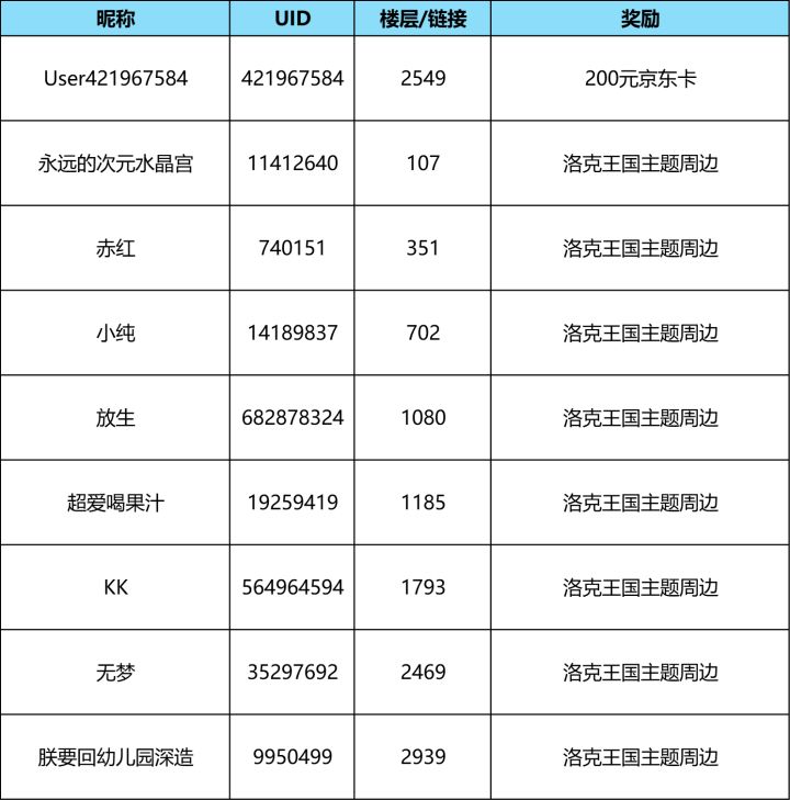 感谢小洛克们的积极参与,本次活动已经结束啦,后续我们还准备了其他活动,小洛克们可以积极参与,下面就一起来看看哪些小洛克获得了活动奖励吧~▌获奖名单注:管理员将在获奖小洛克评论下方回复获奖确认,请小洛克收到回复后在2025年10月23日之前,填写获奖信息收集问卷,奖励将于游戏上线后一个月内陆续通过小洛克们填写的兑奖信息发放,请耐心等待~获奖信息收集问卷:剪影褪去彼得大道的阳光,密语抽离王国