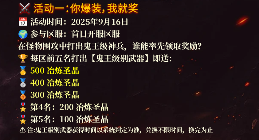 - 参与区服:首日开服区服