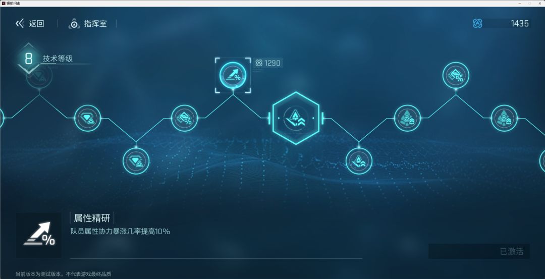 其次点「属性精研」:消耗技术点可以为模组研发提供额外的属性加成,不同节点提供的额外加成不同,下图节点解锁后可以提高研发过程中的属性暴涨几率,更多不同效果指挥官可以自行到游戏内探索哦~