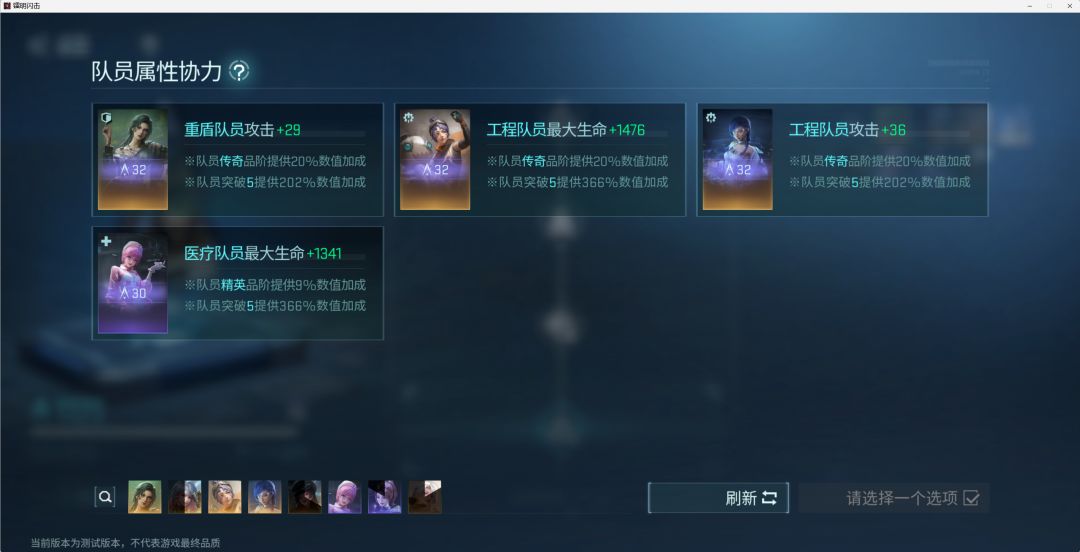 这里的属性加成效果,就与队员息息相关了,可能是专属于某个队员的属性加成,也可能是某个职业的全队加成