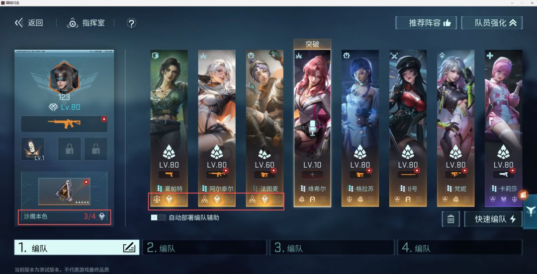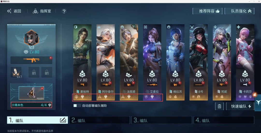 👉 激活小技巧:编队时先点模组图标,看看需要多少个对应标签的队员,优先把符合条件的角色拉进队伍。新手推荐先玩沙鹰模组,前期送的沙鹰角色多,容易凑满人数激活。