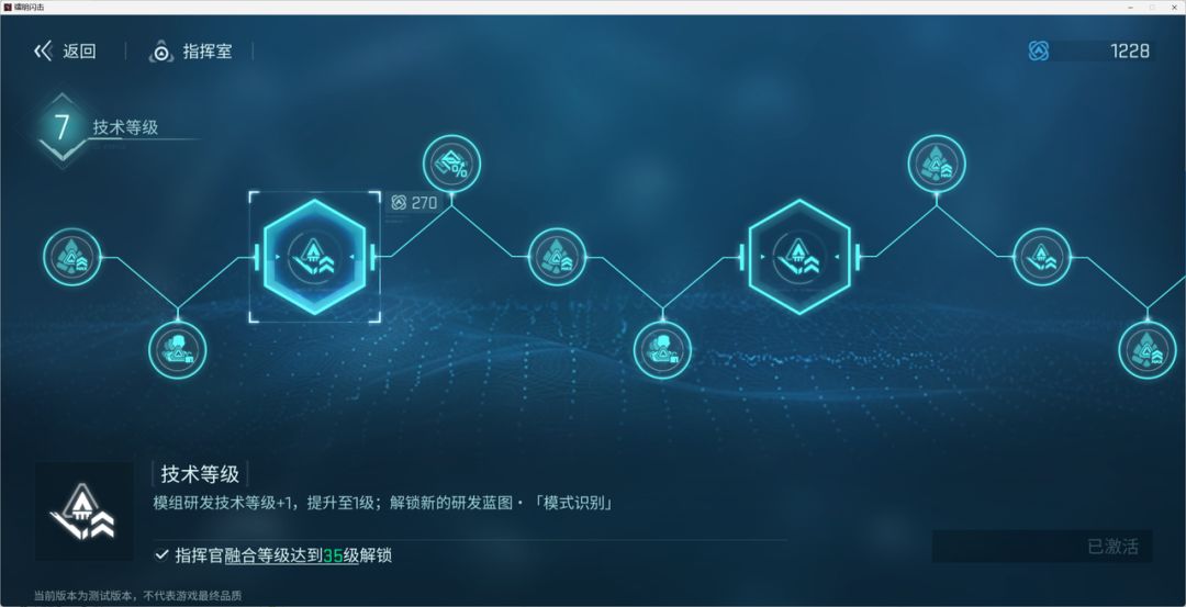 解锁研发蓝图除了需要消耗技术点,还对主角等级有要求(下图要求等级达到35),当主角等级达到35、45级时,建议第一时间过来解锁新蓝图,进行模组研发,对阵容实力提升巨大