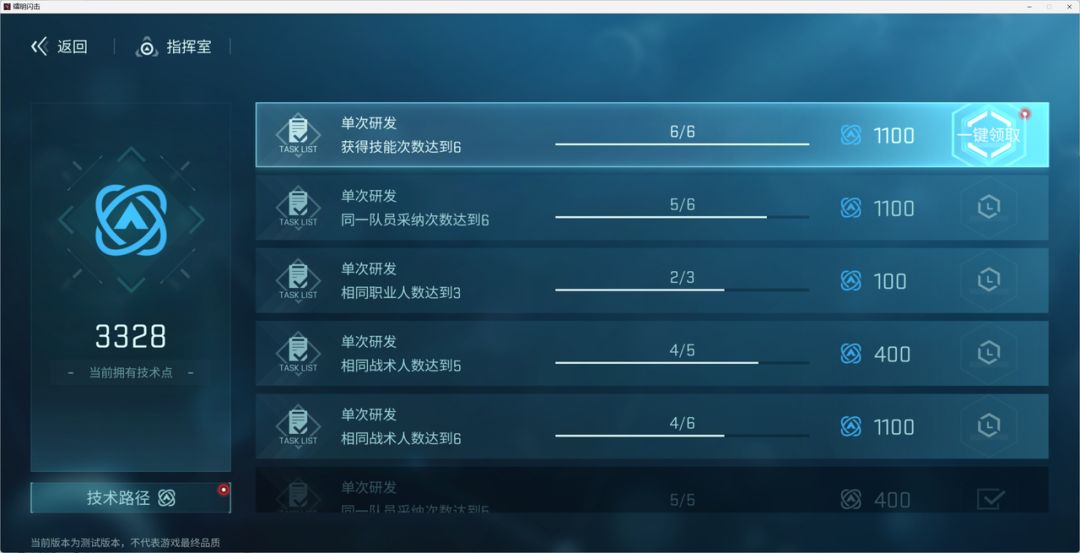 ① 技能点获取:每次完成模组研发,会根据模组的总效能获得相同数值的技术点。完成研发手册里的任务,也能获得一定的技术点。