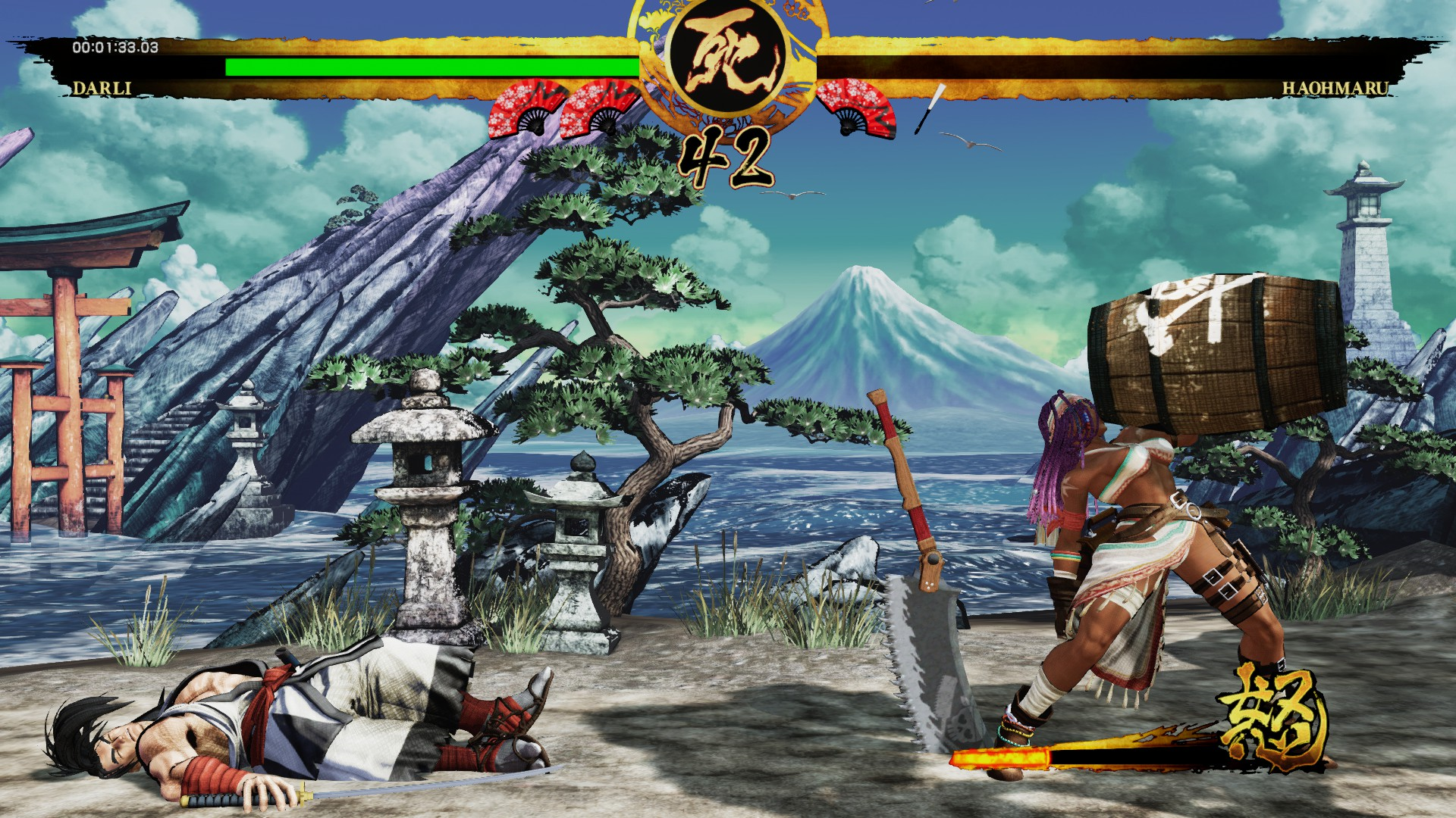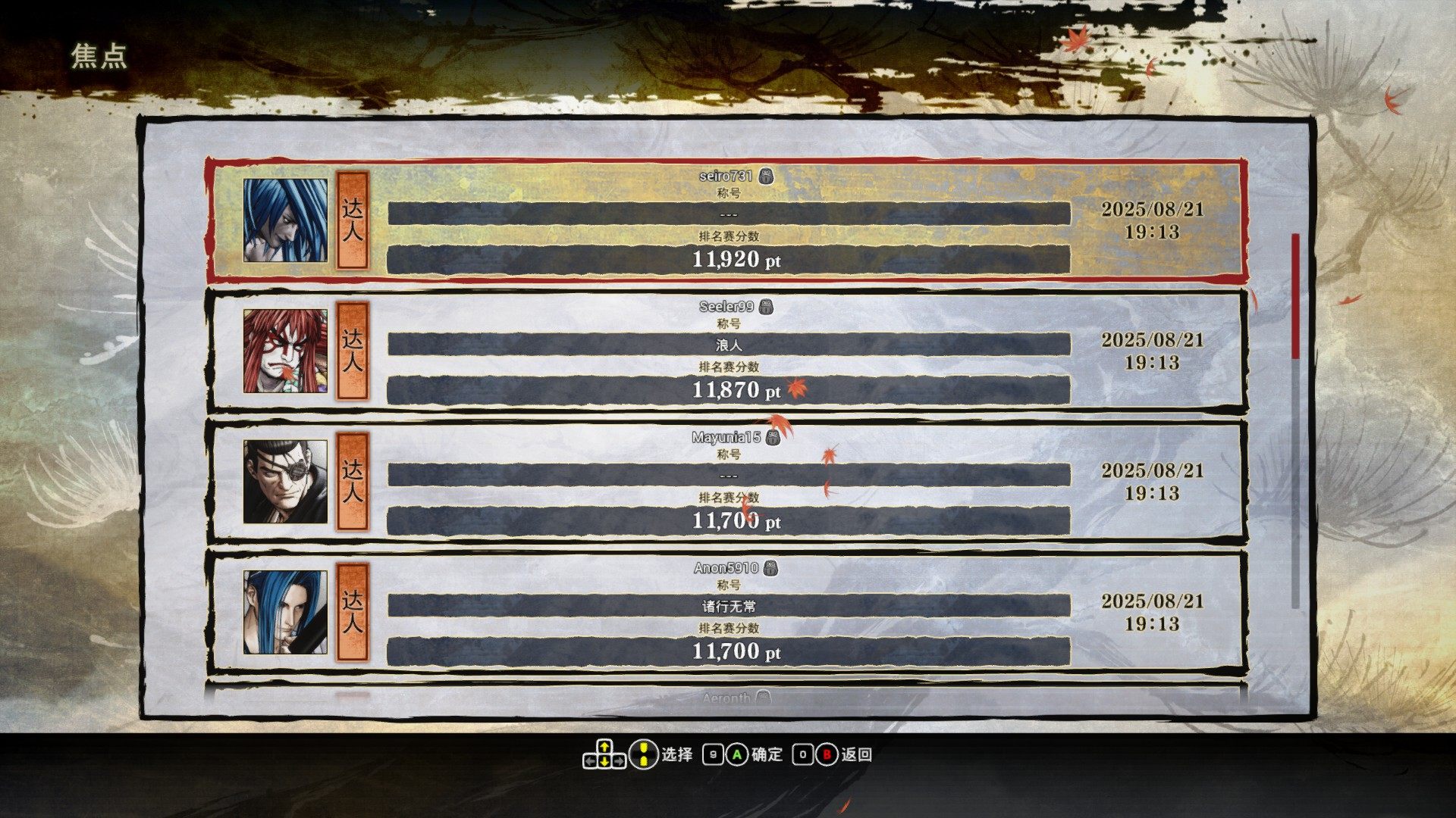 说完了线上比赛,如果玩家还是存在着无法找到对手的情况,则可以选择在道场模式中进行非同步的在线对战。在这个模式下,系统会自动学习线上对战中其他玩家的操作逻辑和习惯,从而形成一个虚拟的替身作为CPU与玩家进行对战。在道场模式下的百人斩模式中,玩家还可以与替身CPU进行连续的对战,从而不断的挑战自己。在这个模式下,玩家可以体验到与游戏中顶级高手的替身CPU进行对战的快感。笔者对于这个模式还是非常的认可,尤其是在游戏现如今在线人数不是很理想的情况下,道场模式依然让这个游戏保有生命力。