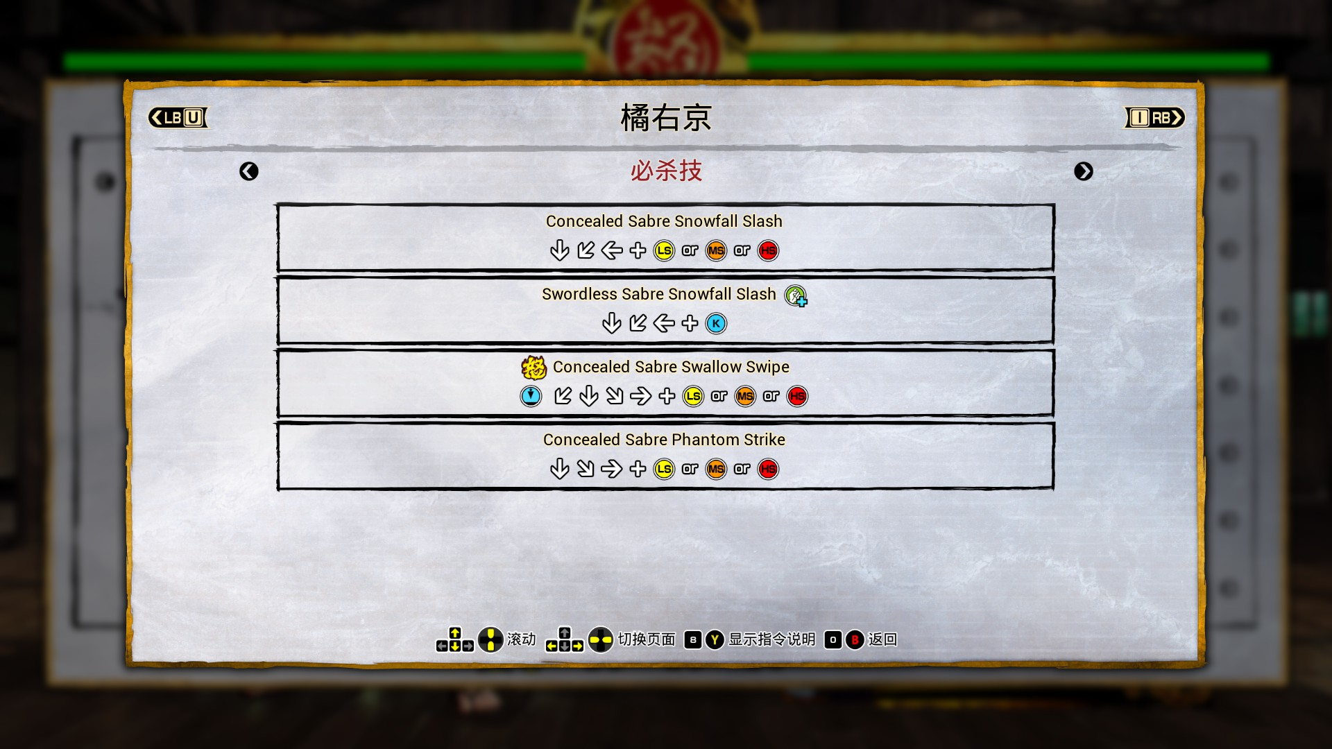进入游戏后,玩家可以发现《侍魂·晓》为玩家们提供了几种多样的游戏模式,在修行模式下,玩家可以进行基本的游戏系统教学。此外,在修行模式下,玩家也可以进入练习场进行练习模式的游玩。在该模式下,玩家可以选择任意角色进行练习,打开角色的招示表,查看每一个招式的输入指令。在练习模式下,玩家也可以设置陪练角色的攻击招式,甚至是进行连段的录制,来让玩家进行应对策略的开发和练习。