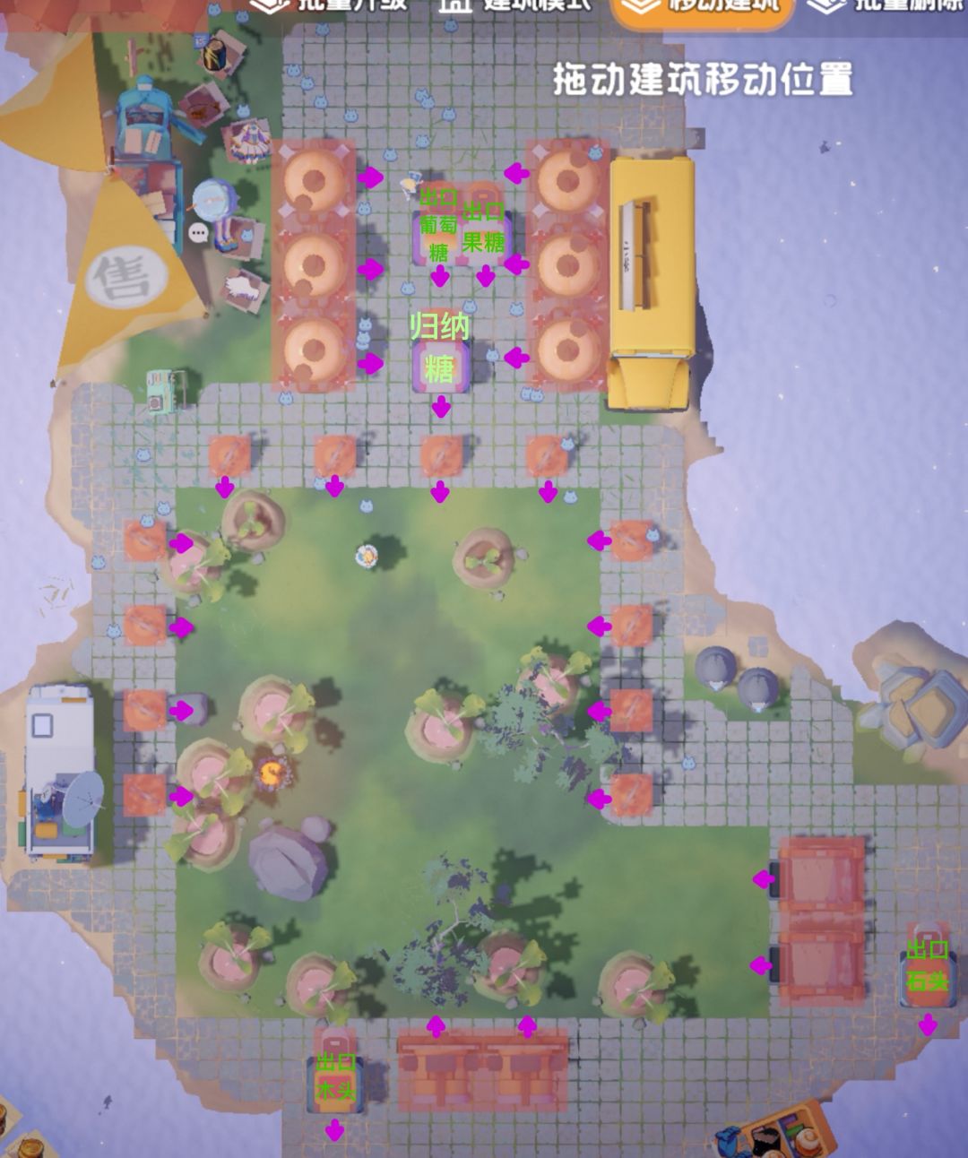 5.解锁食物中转站后,可以在主岛放置并设置出口糖,在糖岛放置并设置进口糖,统一合成高级产物