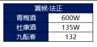 所需要的酒资源与火凤·庞统和祸乱·张角相差不大,但是根据武将特性我们选择与火凤·庞统和翼候·法正进行对比。