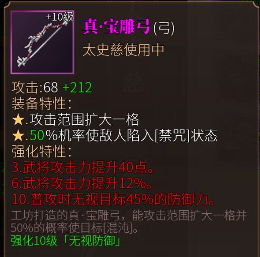 由于基础攻防区的数值=系数*(攻击-防御)+常数,无视防御可等价为提升我方攻击。例如基础攻击1300的太史慈打对面1000防御的武将,太史慈能够无视对方70%的防御,即无视对面700点防御,等价于提升自己700攻击,相当于给自己加个了54%攻击的buff。典韦紫手戟无视40%防御,伤害也是一下子就上来了