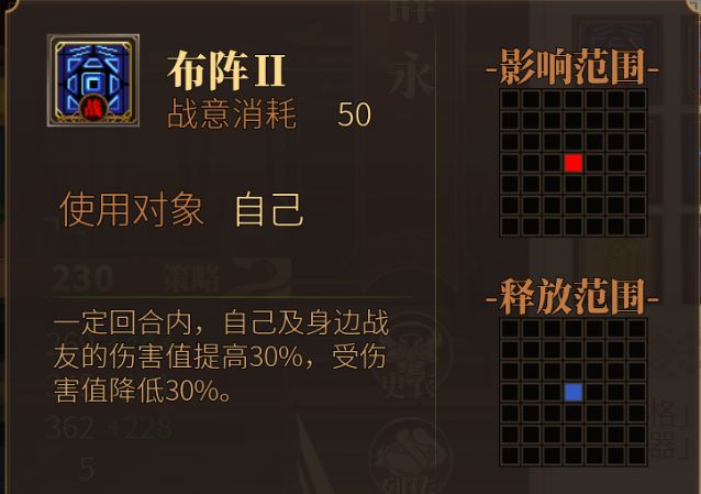 - 刘备的天赋(九宫格友方+5%~15%属性)、薛永的皮肤(九宫格友方攻击+10%)