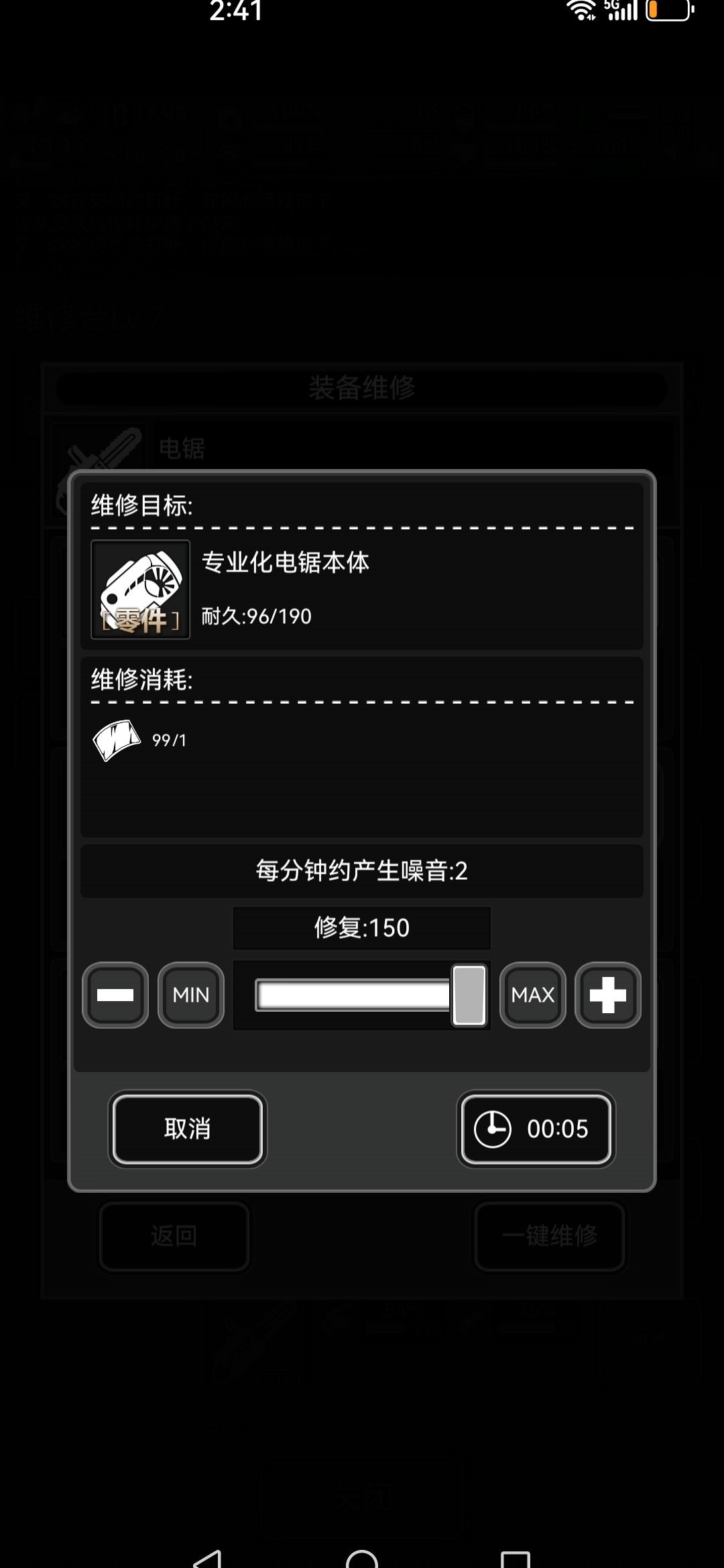 接下来就是喜闻乐见的维修方面了,这也是决定一个武器强弱的根本。让我们看看电锯维修咋样?