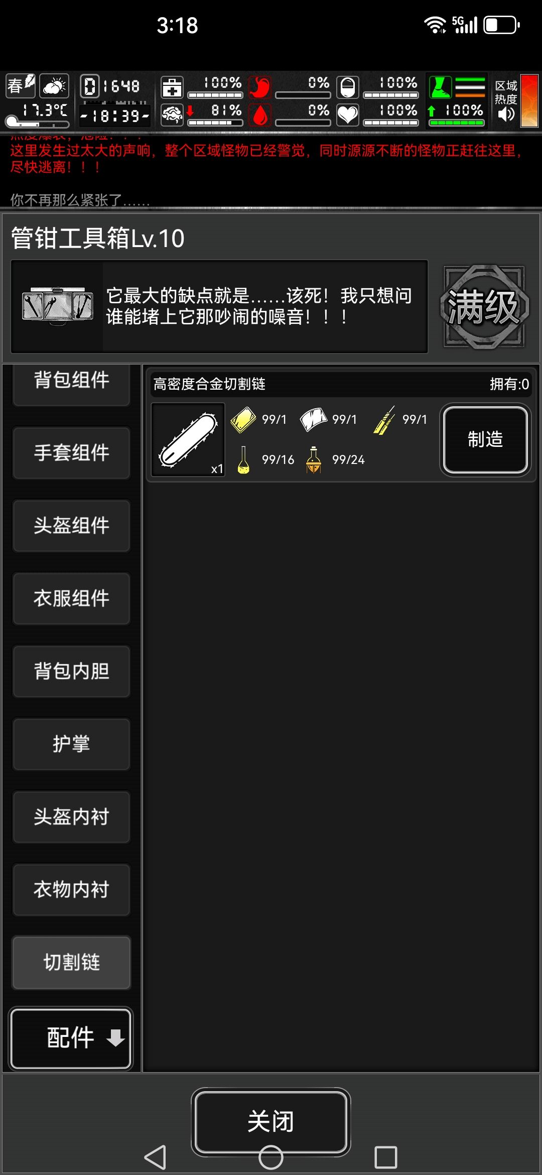 电锯没练熟练度之前面板那么差,而且属性面板也没多强,没有把手,就只有两格距离,这个切割链又是家里的工具箱中都可以自己手搓,那么即便弄个满配,难道真的会好用吗?