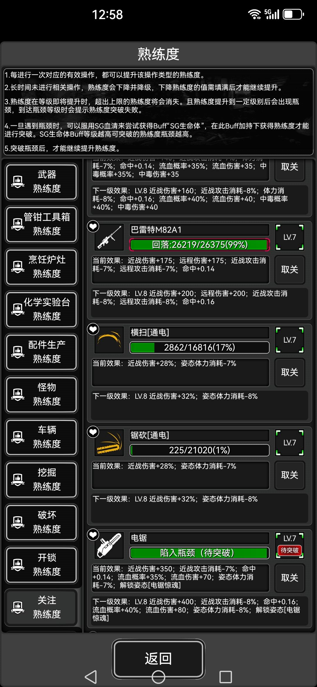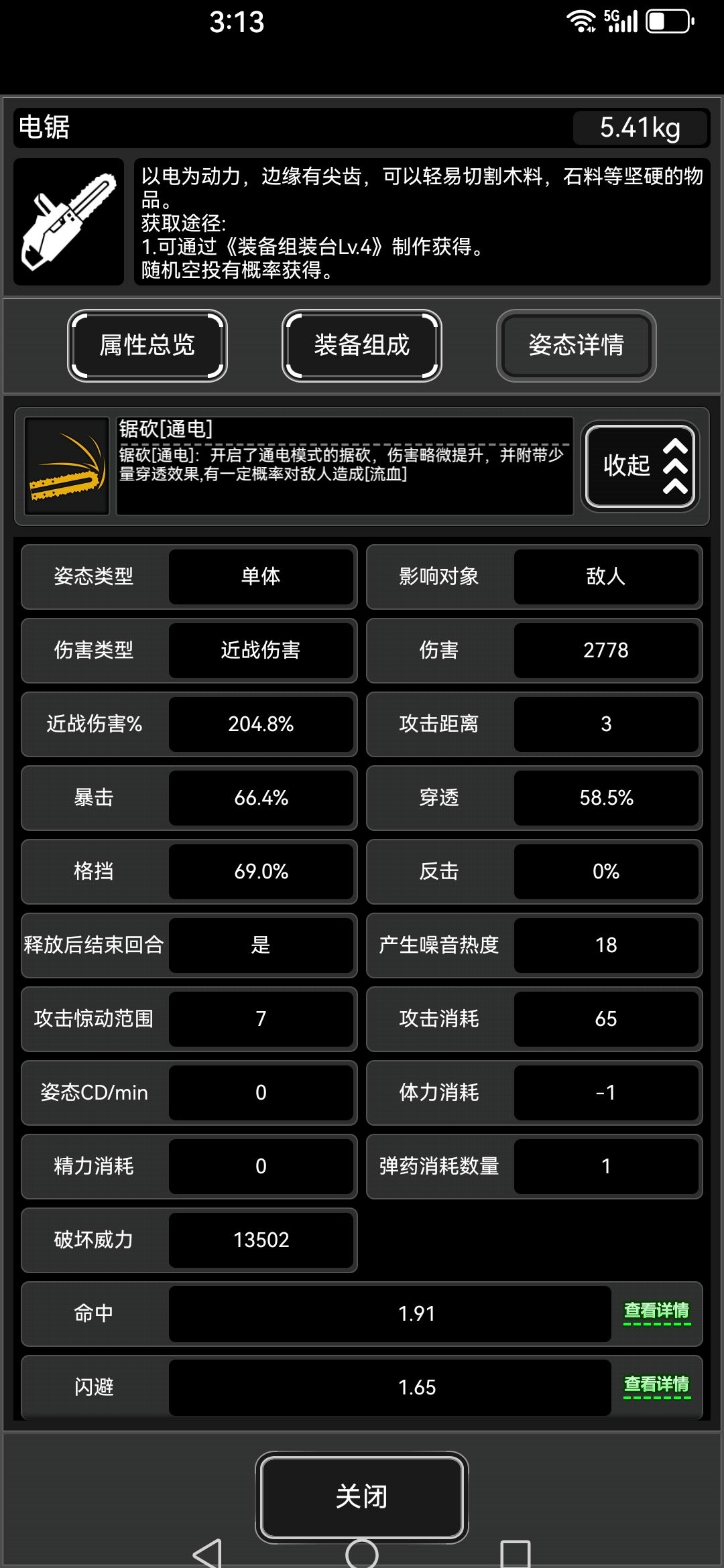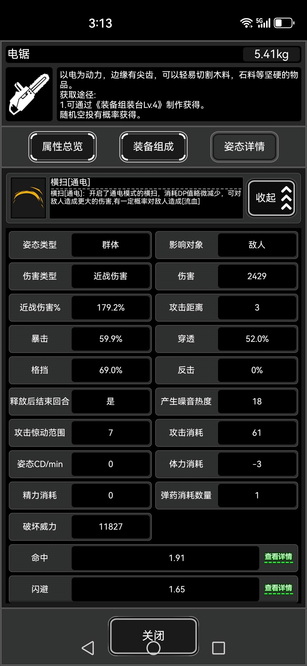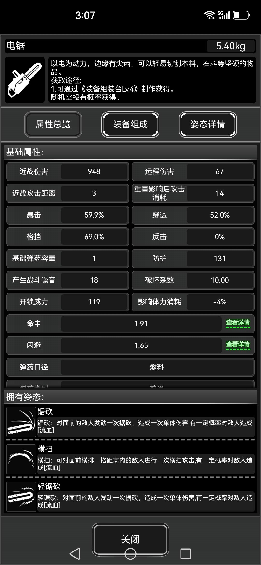 先让我们看看先让我们看看这样组成的电锯,把熟练度练满之后面板咋样。高的是通电锯砍,低的是通电横扫