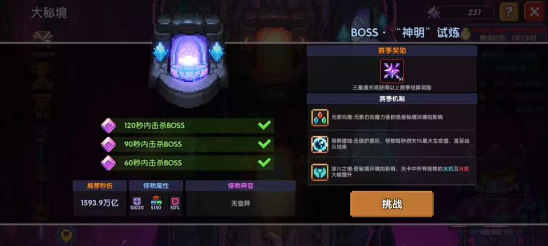 词条:对怪物破盾后,boss每秒损失1%血量