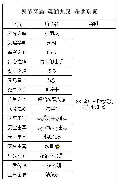 恭喜以下获奖玩家,奖励将于7个工作日内发放,如有疑问请及时联系客服~玩家可自行将相关道具进行清理。