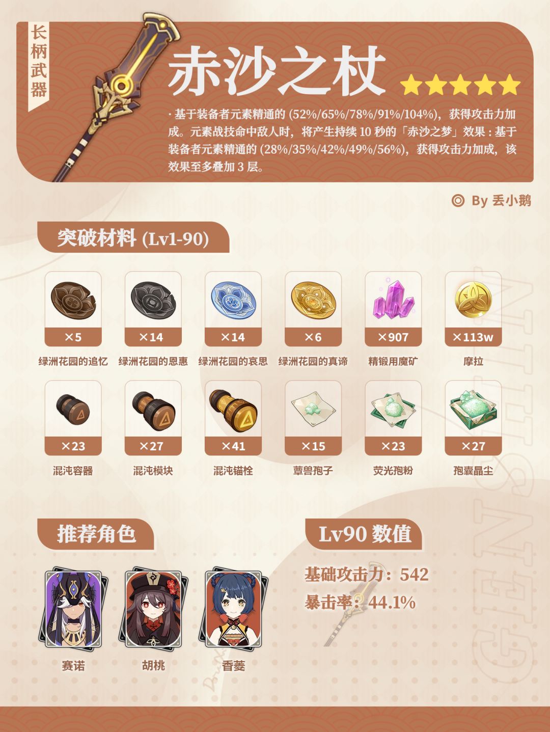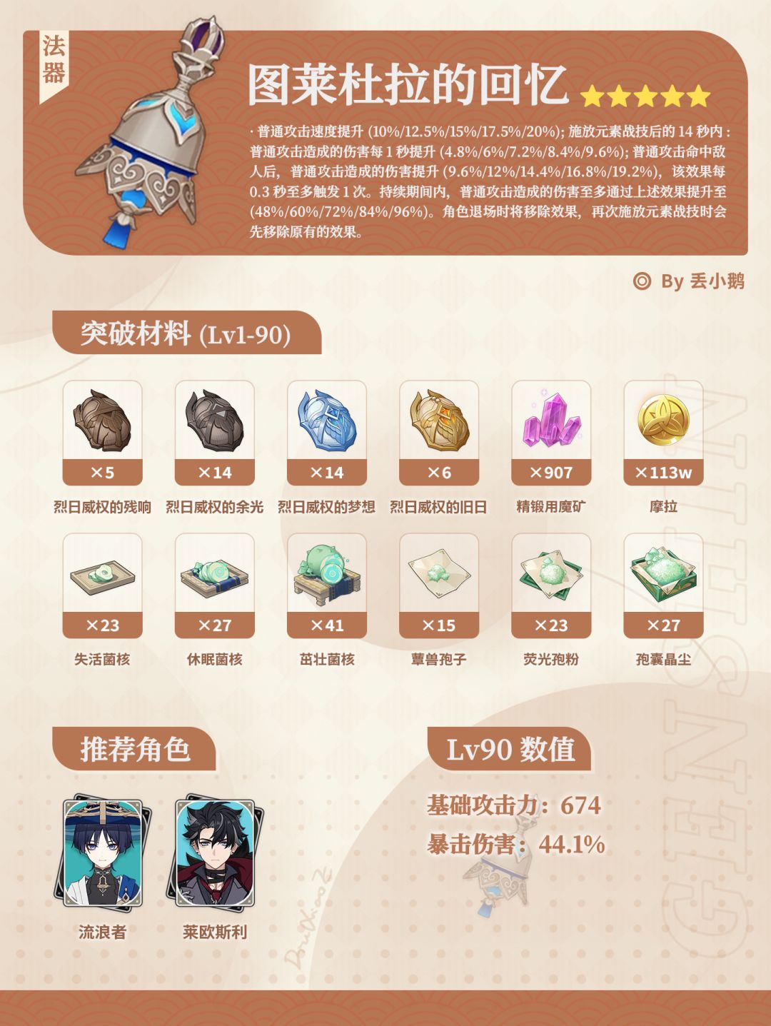 我是丢小鹅,为你带来原神月之一「露草的行盏」Up5星武器突破材料~