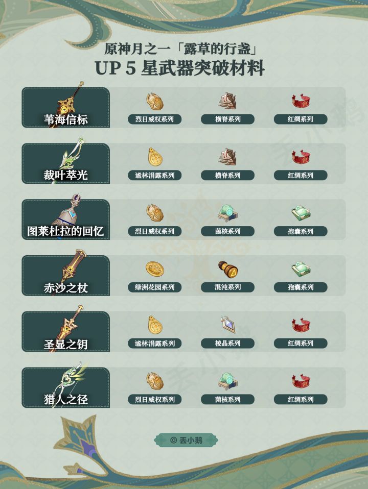 【月之一】须弥集录Up5星武器突破材料