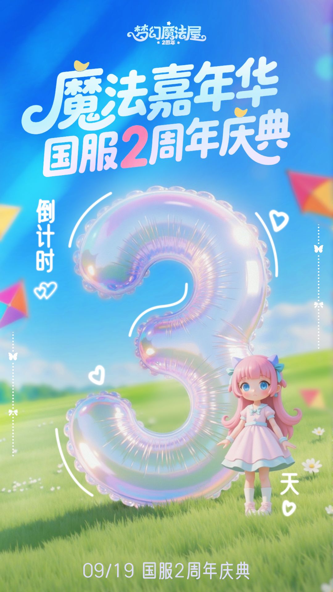 距离[梦幻魔法屋]国服2周年庆典开启就剩3天啦!帕嘟有点等不及了,先给大家发个倒计时福利兑换码礼包🎁冷静一下叭~!