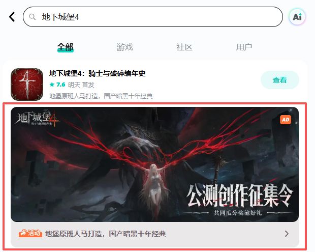Step1:在TapTap搜索「地下城堡4」,点击红框处的页面,可进入活动页;