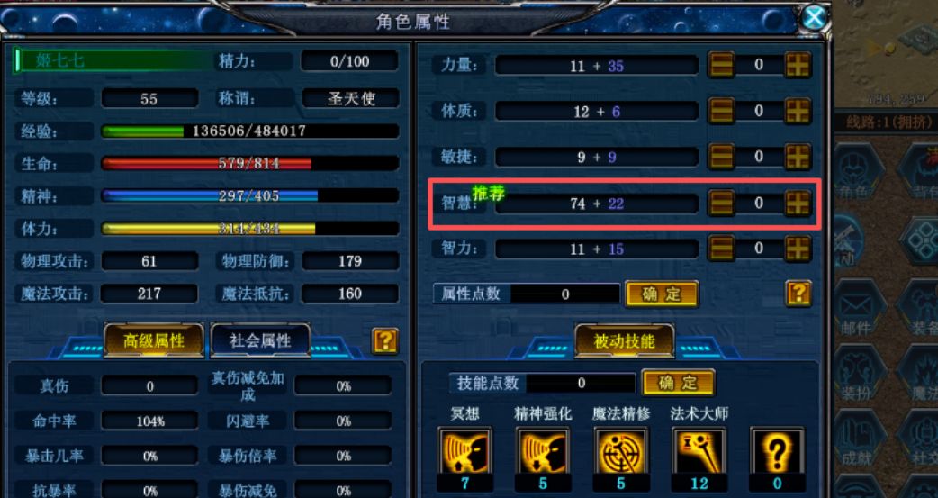 魔法师推荐加智慧提升魔法师的魔攻以及魔抗,多余的点数可以加智力提升精神。