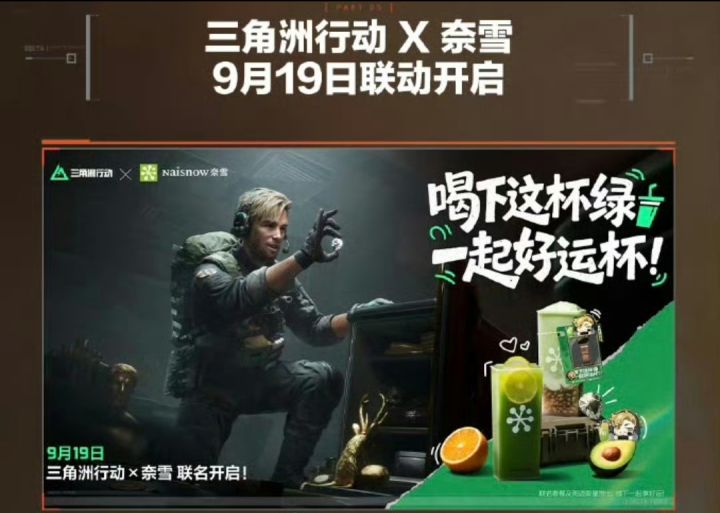 各位游戏玩家和茶饮爱好者注意啦!9月14日,《三角洲行动》官方发布重磅消息,将与知名茶饮品牌「奈雪的茶」展开联动,活动9月19日正式开启!
