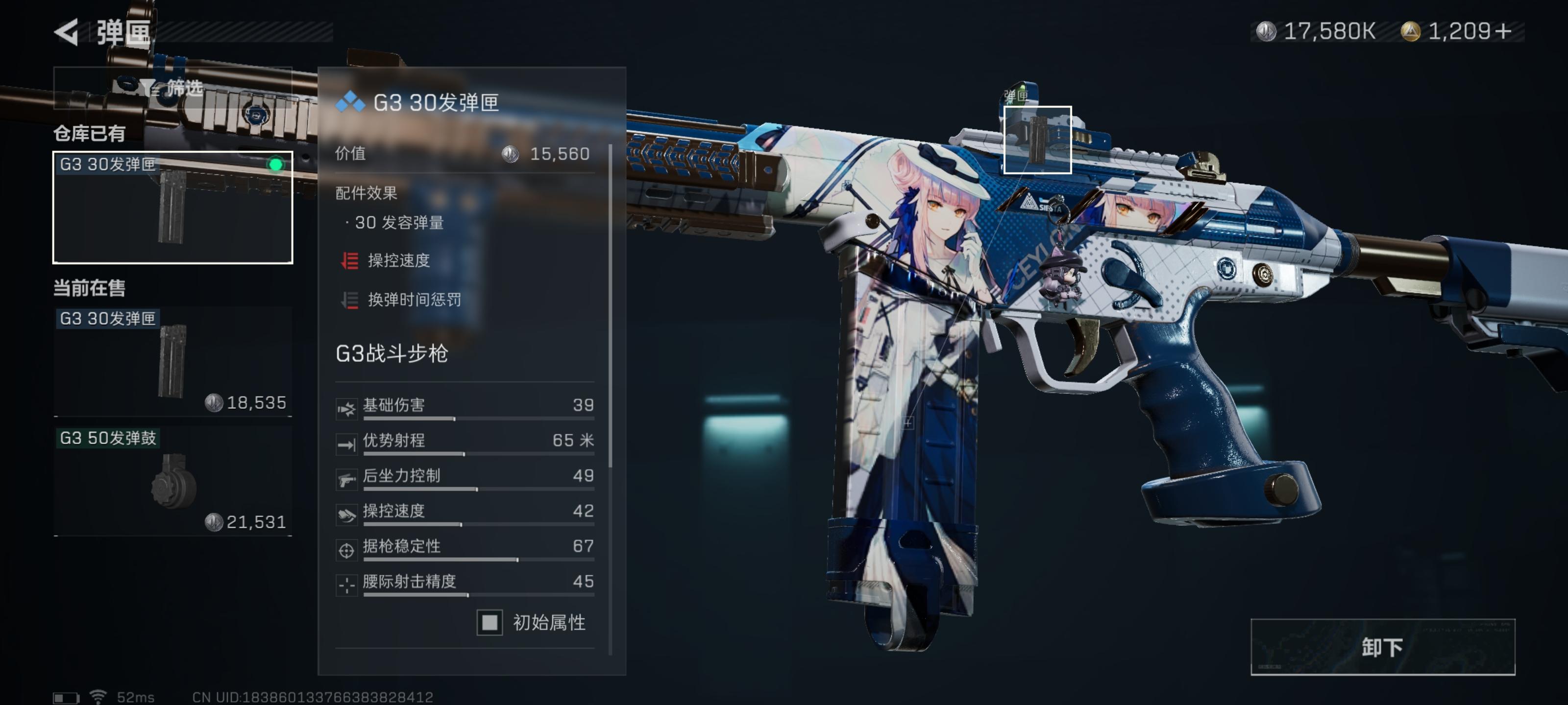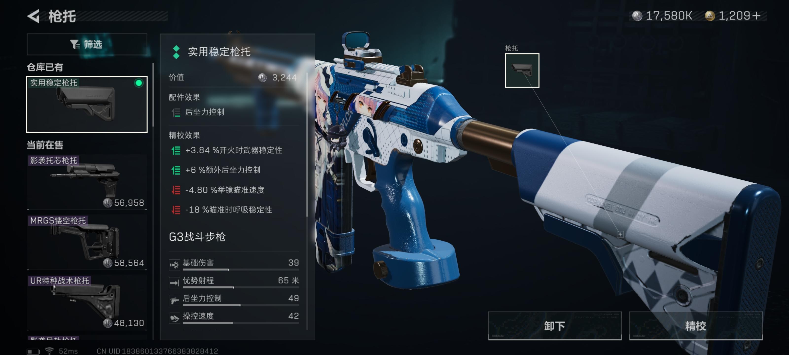 枪管选择G3守卫标准枪管组合,既有射程也有客观后坐力控制,在中距离对枪中能胜人一筹。