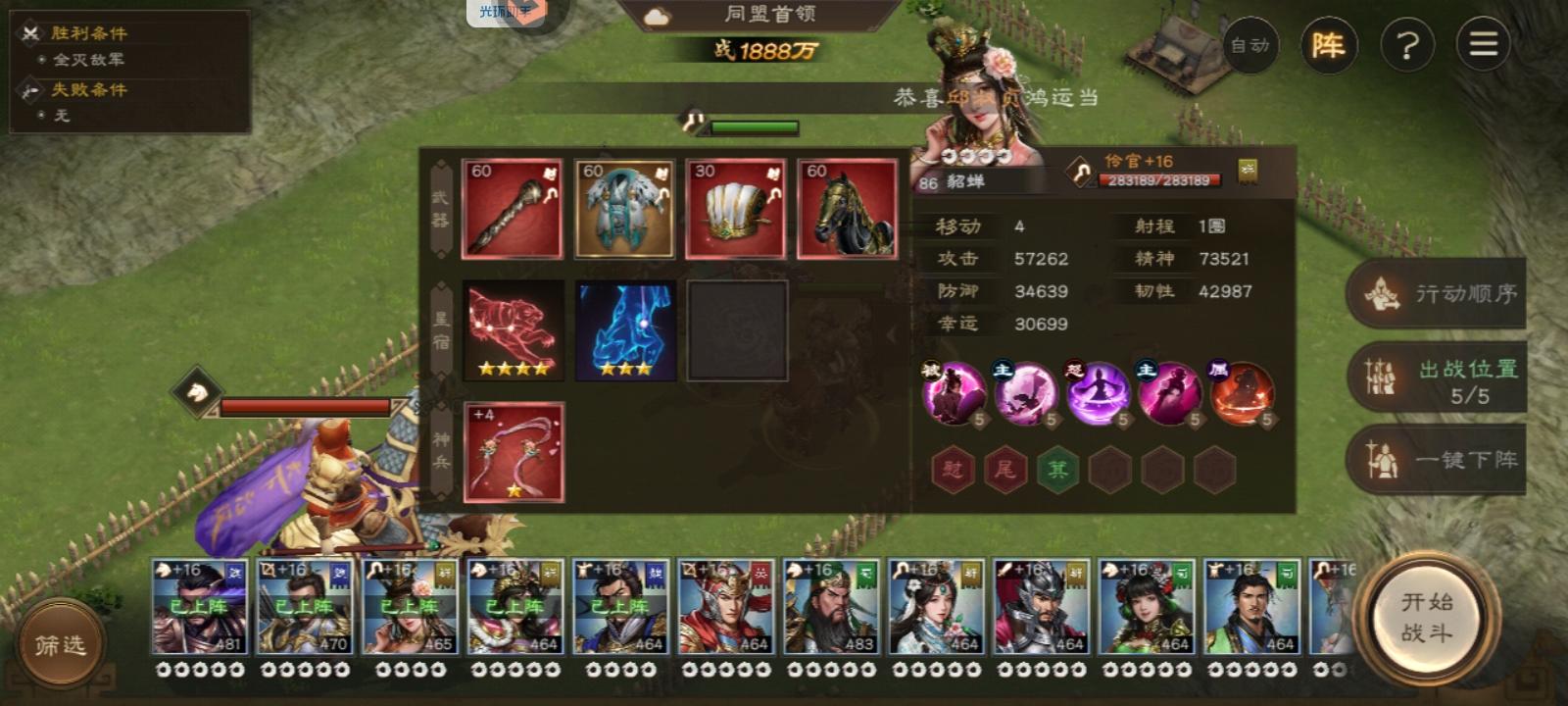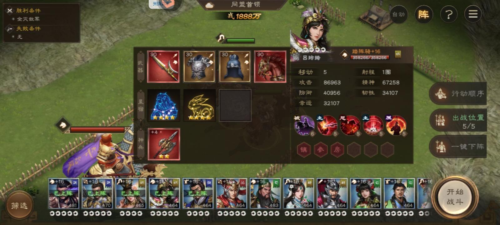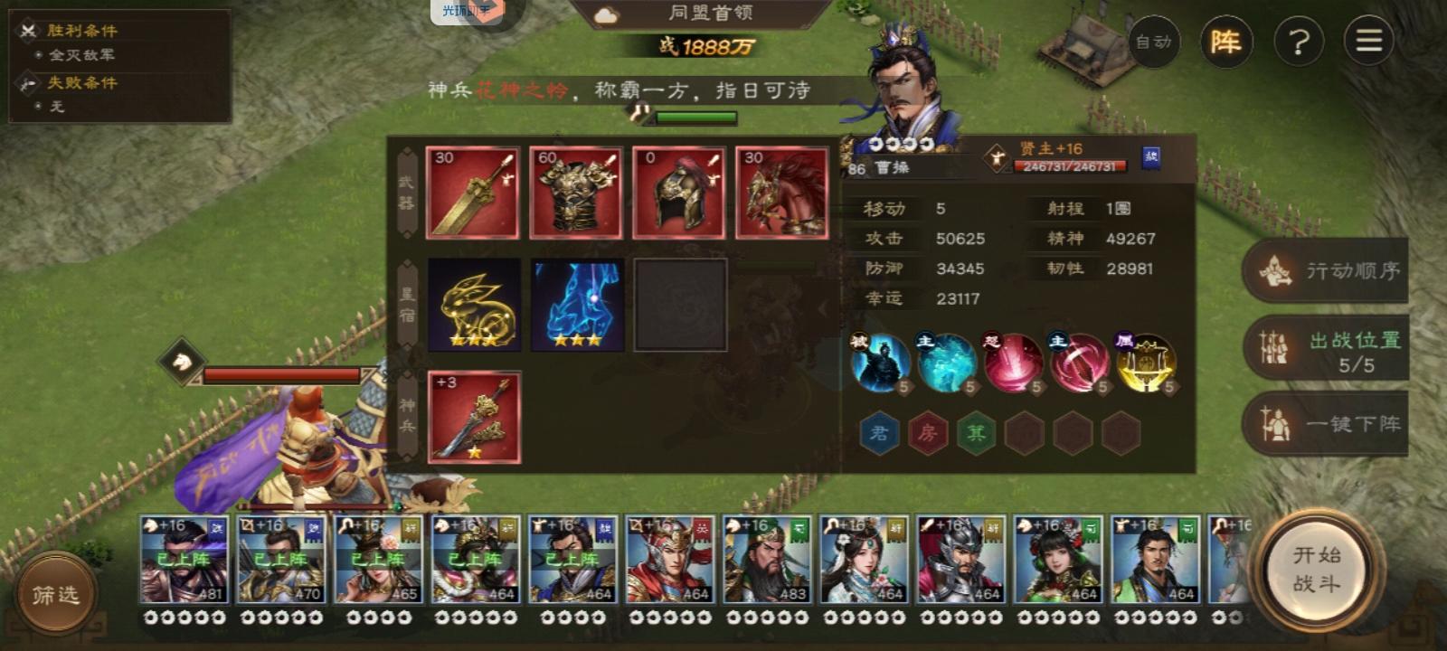 8.后续回合:后续没啥好说的了,基本就是注意貂蝉/曹操放技能清debuff,不要死人了就行。只要保持好兵刃/爆伤debuff,就能拿高分。