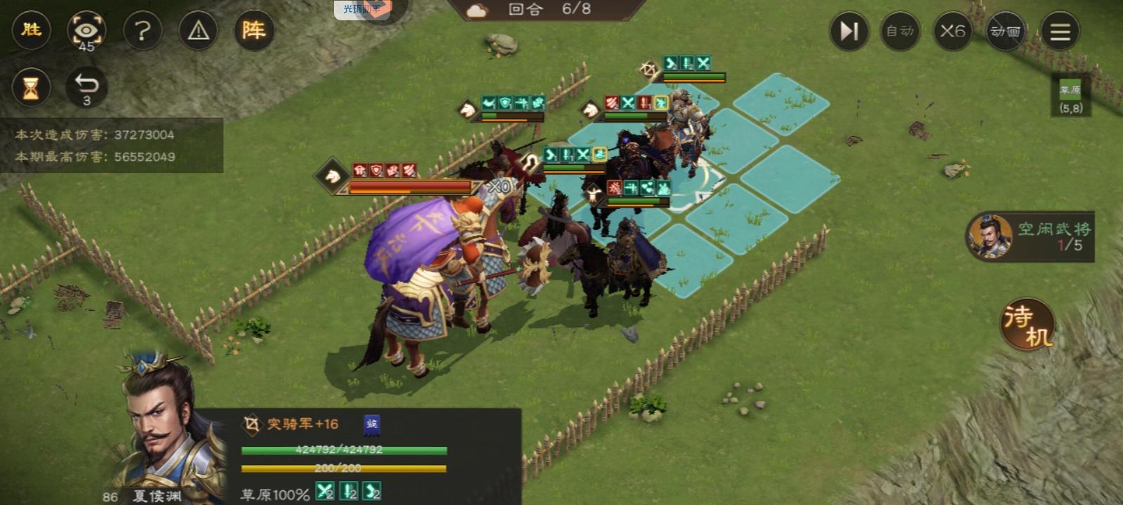 6.5回合:依次原地输出,曹操最后移动到图示位置开增益,并且清除队友debuff。结束站位如图,注意凹日月debuff。