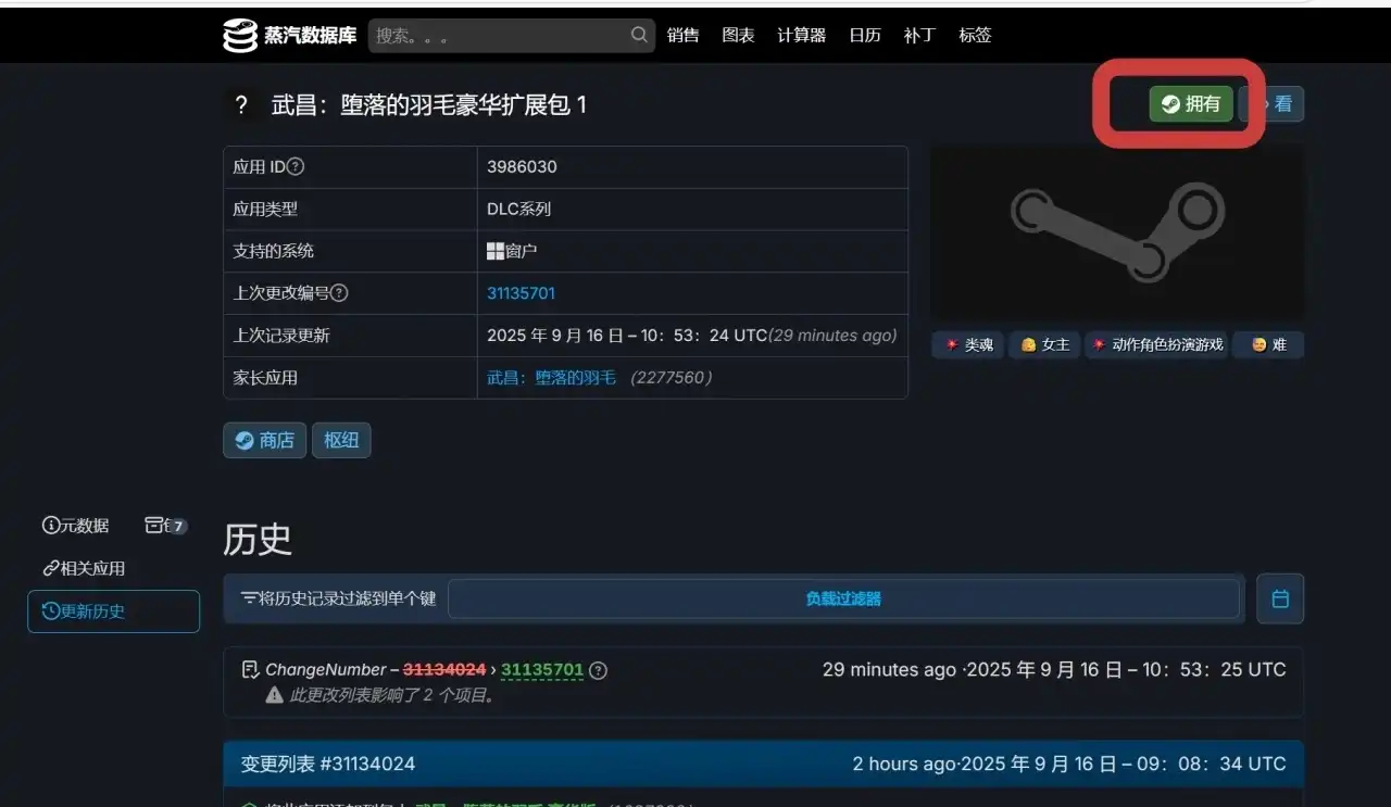 根据Steamdb数据,《明末:渊虚之羽》在今天下午17点左右,把一个名为「豪华扩充包1」的添加至了《明末:渊虚之羽-豪华版》中