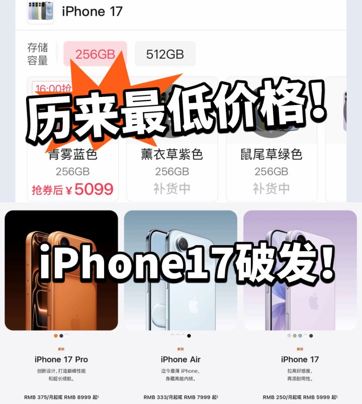 苹果17价格最低!跌破底价5000!