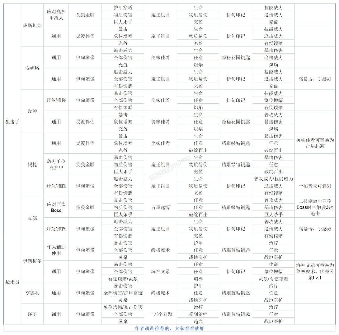 ②所有推荐心锚为目前可在游戏内获得的心锚,往期活动心锚不在主要推荐之列。